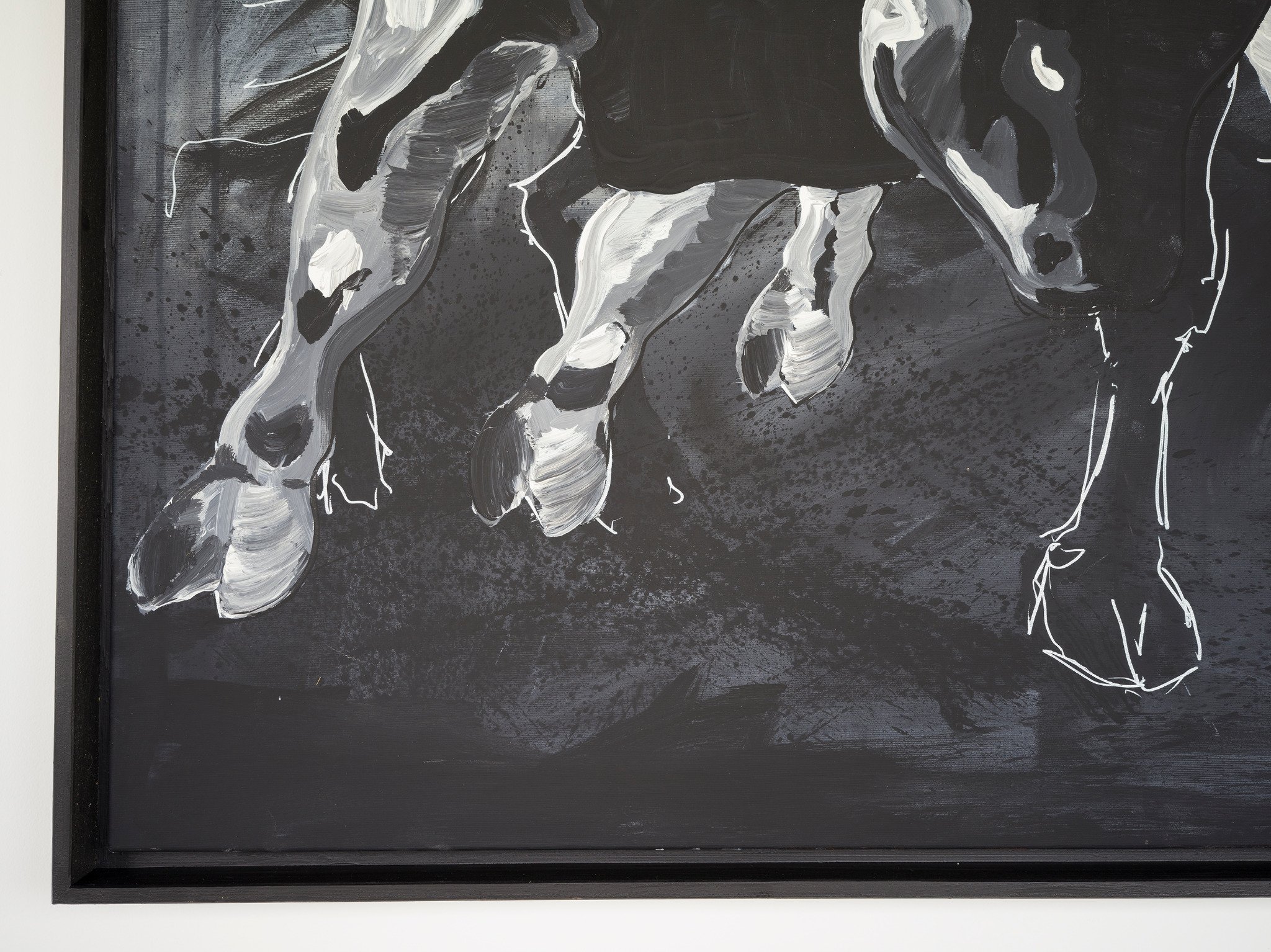 Bull –Black embodies strength, legend, and movement through intuitive painting and drawing. It reimagines the iconic motif of the bull, a symbol of untamed energy, offering a fresh perspective on its archetypal significance. The color black plays a pivotal role here, evoking mystery, depth, and monumentality.