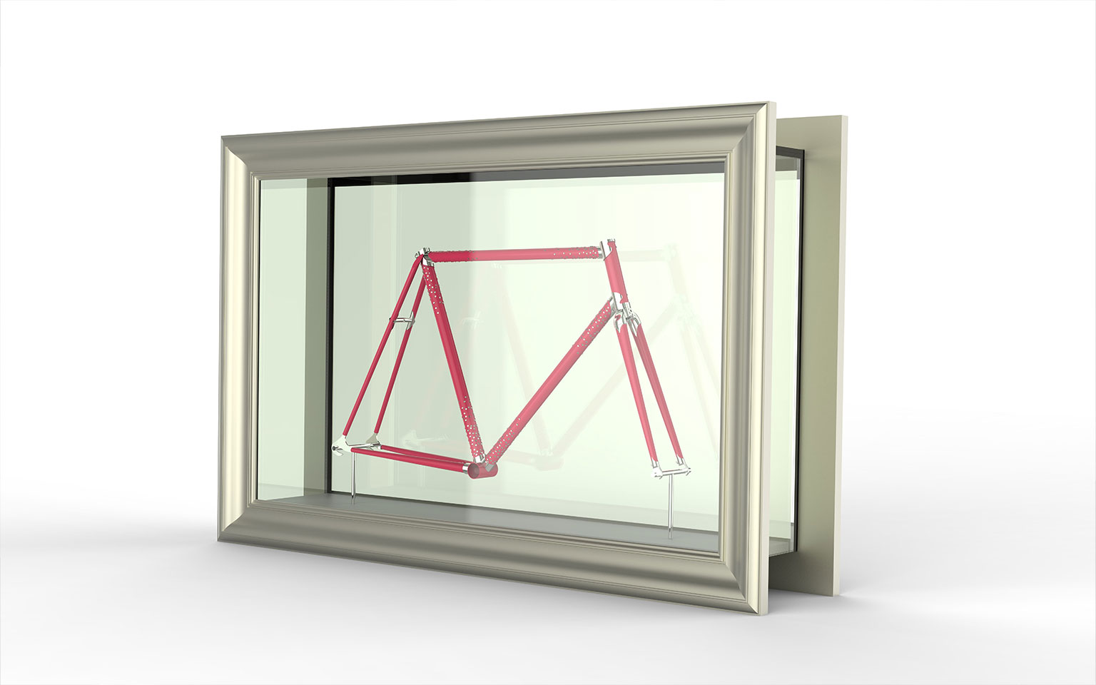 Pantani Dream is a classicist piece on its own. The restraint and strictly closed framing in time and space, a levitating classic frame in red (it is not known that Marco Pantani would race in the professional peloton at the peak of his career on a red bicycle) with glossy silver axis is a refined transformation of spontaneity, suggested in the second plane only by glittery details.